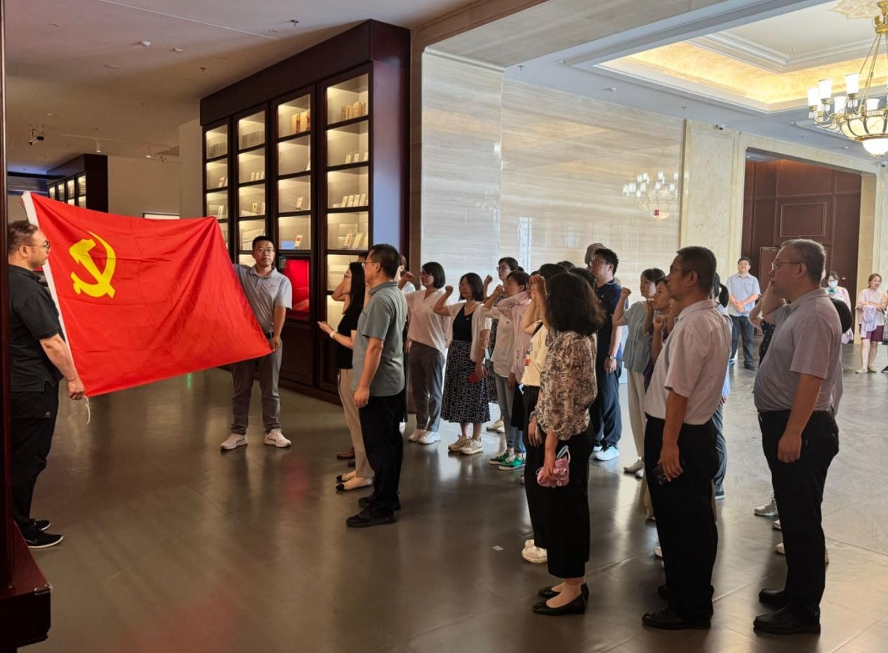 在讲解员的引导下,战略所一行先后参观了中国国家版本馆中央总馆文兴楼、文华堂、文瀚阁、兰台洞库四座主体建筑,以及“真理之光--马克思主义中国化时代化经典版本展”“斯文在兹--中华古代文明版本展”“见证伟业--中华民族复兴版本展”等专题展览,深刻感悟马克思主义中国化时代化的光辉历程,充分领略中华文化的底蕴之深、文脉之盛,见证中华民族伟大复兴的时代脉动,极大增强了文化自信。在“真理之光”展厅,面对鲜红的党旗,战略所党员在黄琳同志的带领下,排列整齐,举起右拳,重温入党誓词、重忆入党初心。