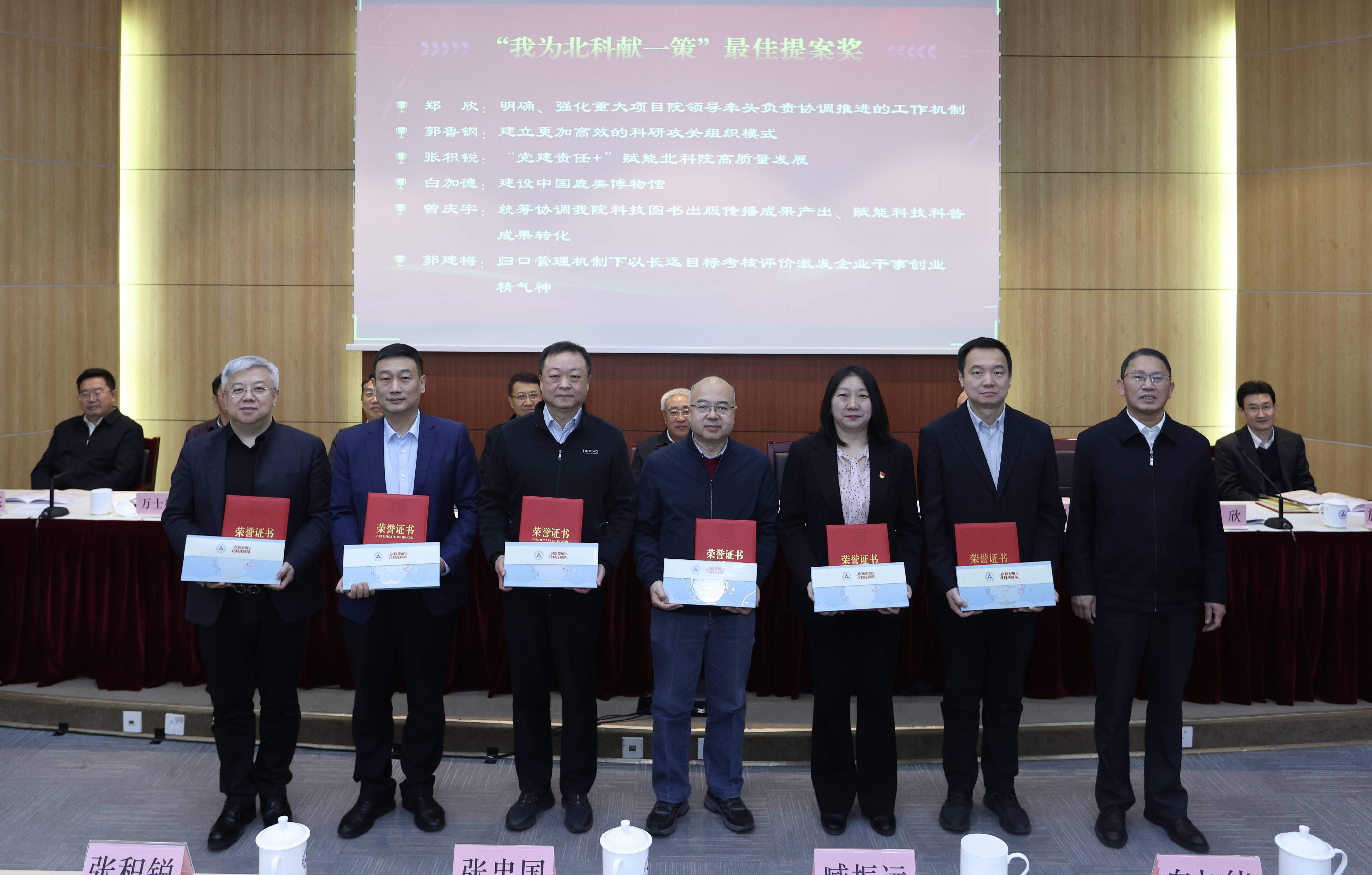 会议宣布了“我为北科献一策”活动提案评选结果,并为获奖提案代表颁奖。来自机关处室、内设机构、事业单位、企业各类型单位的6位最佳提案代表进行了交流发言。
