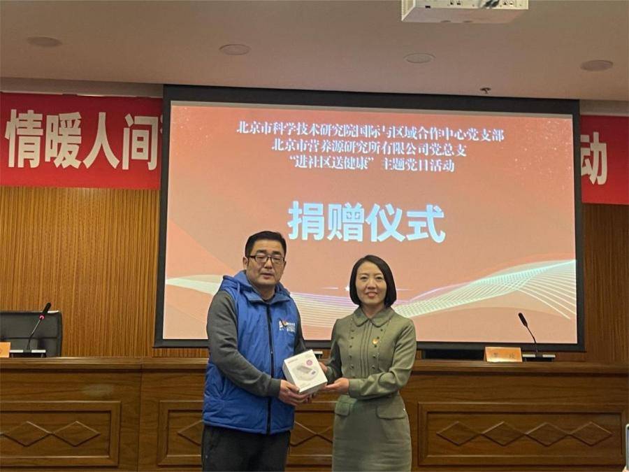 3月24日下午,幸运彩国际与区域合作中心党支部(以下简称国合中心党支部)与北京市营养源研究所有限公司党总支(以下简称营养源所党总支)携手走进中国青年政治学院社区,联合开展以“爱心传递,情暖人间”为主题的“进社区送健康”主题党日活动。来自国合中心党支部、营养源所党总支和中国青年政治学院社区党支部(以下简称中青社区党支部)的60余位党员与社区居民参加此次活动。国合中心党支部书记、主任李军凯,营养源所党总支书记罗欣与中青社区党支部书记解本雪出席活动并发言。此次活动还设置了捐赠仪式、健康讲座和现场互动为居民测量血压等环节。