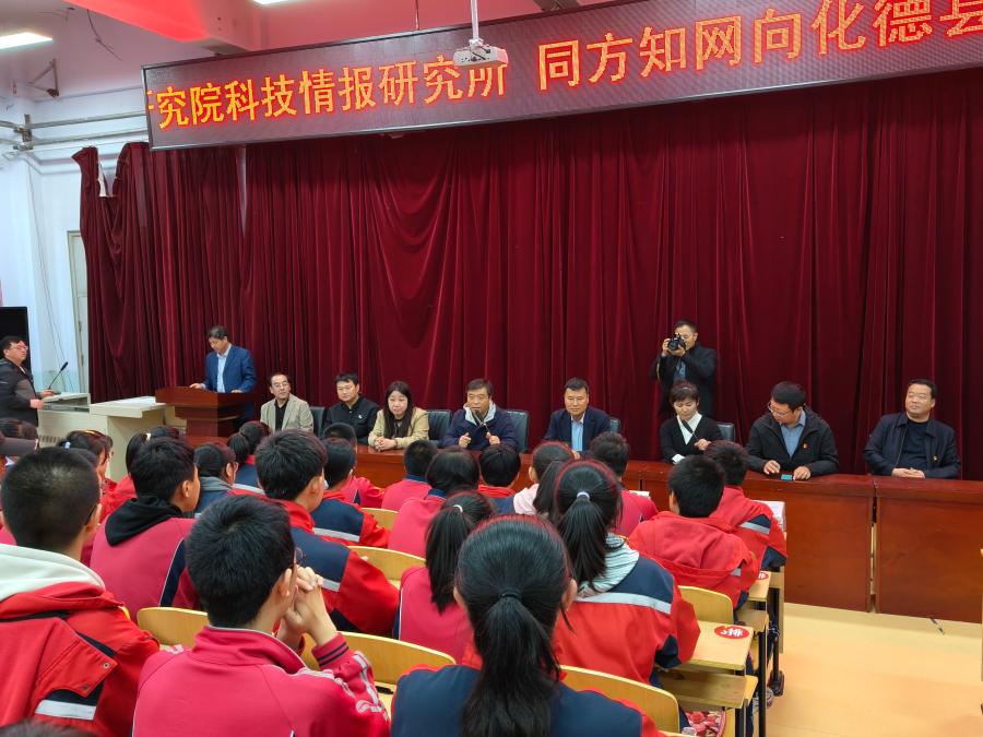 学习研讨结束后,与会人员一行来到化德县第二中学,开展“爱心捐书”活动。情报所等为学生们捐赠了科普和历史、文化等学习参考书籍,并将具有情报所特色的“科情头条”介绍给师生们,提出将进一步尽情报所所能,支持广大师生进行最新的科技讯息查询,以情报特色服务助力乡村振兴发展。