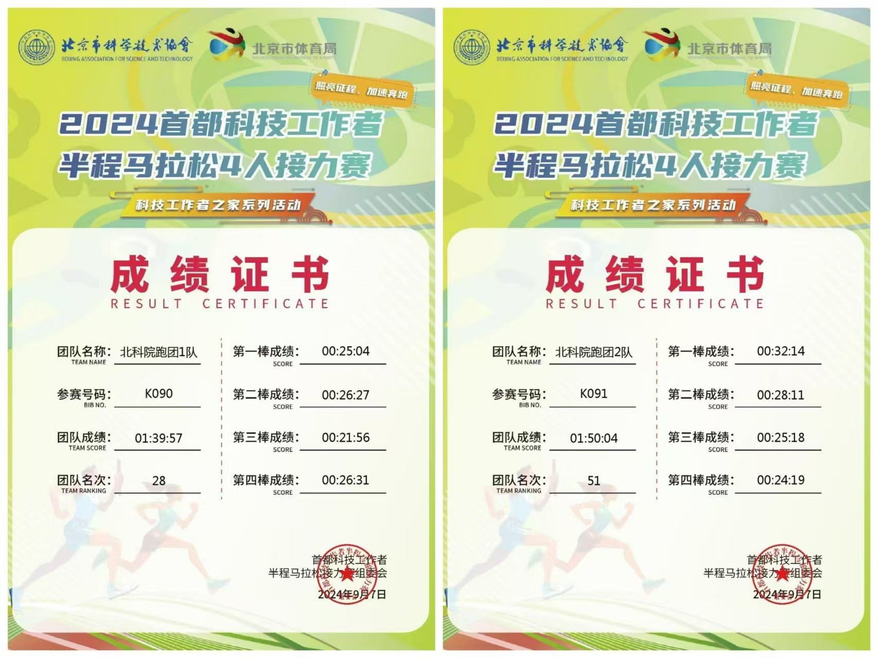北科院跑团成绩证书