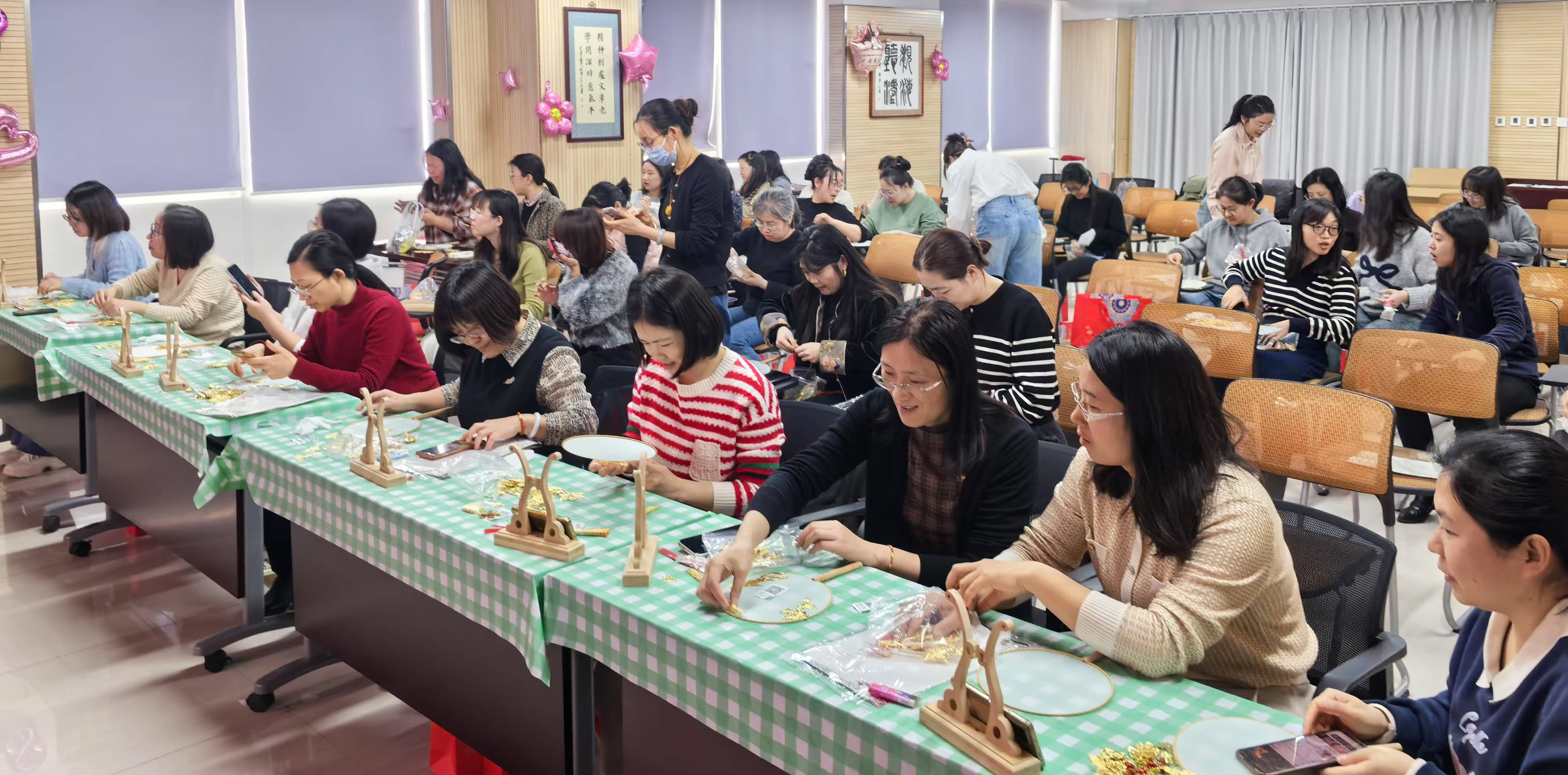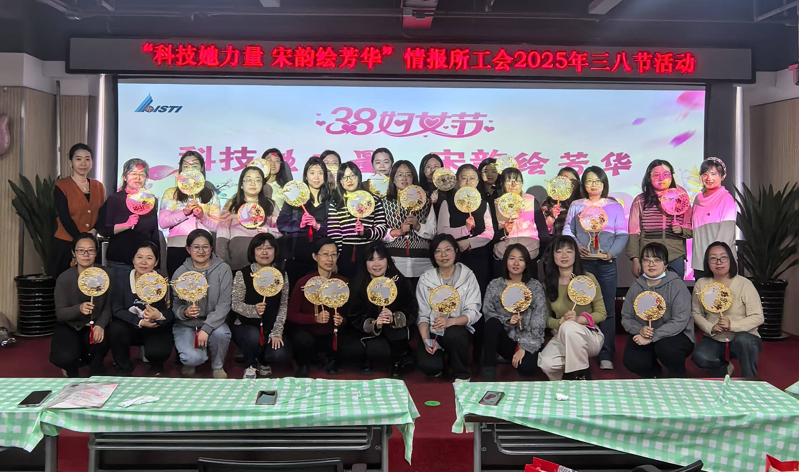 为弘扬中华优秀传统文化,丰富女职工精神文化生活,在2025年“三八”国际“女神”节即将到来之际,情报所工会于3月7日在11层报告厅组织开展了“科技她力量–宋韵绘芳华”主题活动。60余名女职工齐聚一堂,共同体验非遗文化魅力,欢度专属节日。