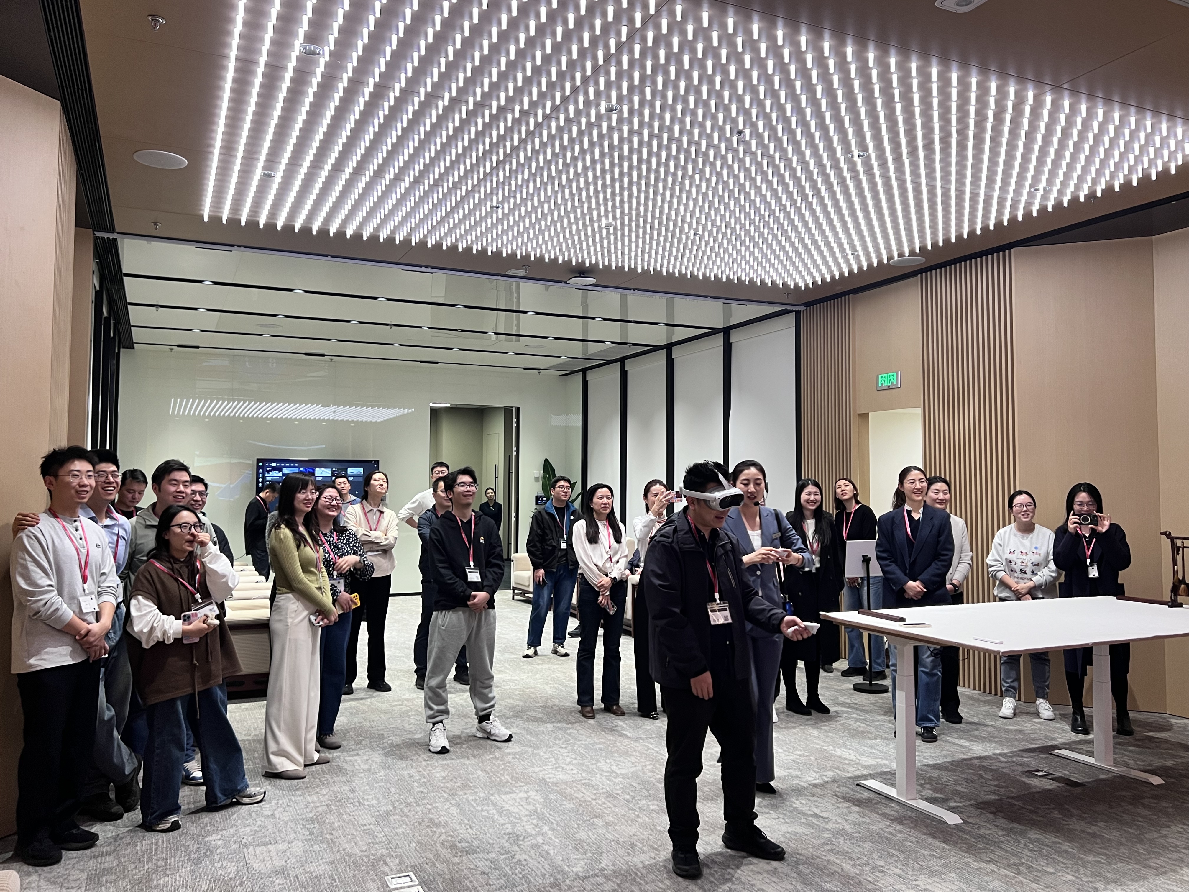 在抖音集团讲解员的引导下,院青年团队参观了方恒展厅,通过动态展示、交互式体验和案例解析,深入了解抖音集团在人工智能、算法推荐、大数据分析等领域的核心技术突破。重点考察了抖音自主研发的“豆包”机器学习平台与“扣子”智能工具,深入了解其在内容推荐、数据标注、视频生成等领域的应用逻辑。并体验了VR创新产品,直观感受到数字技术对传统行业转型的推动作用。