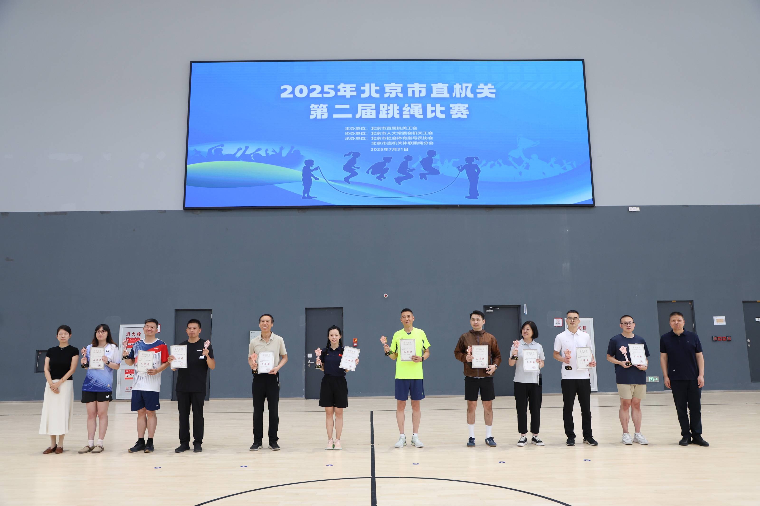 7月31日,由市直机关工会主办,市人大常委会机关工会协办,市社会体育指导员协会、市直机关体联跳绳分会承办的2025年北京市直机关第二届跳绳比赛在潞城全民健身中心举行。我院代表队经初赛、决赛,最终获得了三等奖的好成绩。