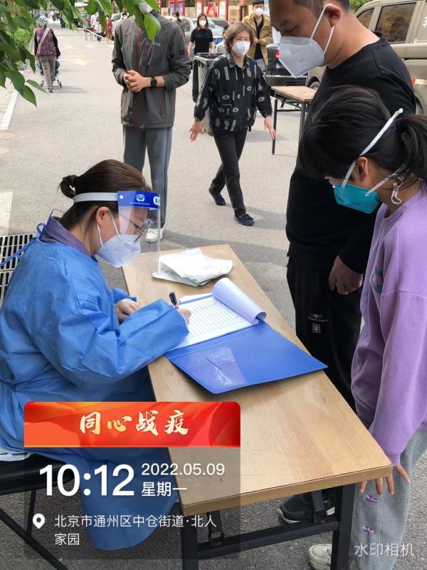 于娟在朝阳区常营丽景园社区进行核酸检测信息采集录入