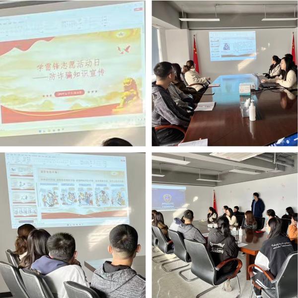 动物中心团支部开展“学雷锋志愿活动日——防诈骗知识宣传”活动,通过视频展示和案例分享的形式,从电信诈骗、网络诈骗的实例入手,讲解诈骗的种类特征、常见手段和防范建议,增强了中心内职工的识骗、防骗意识。