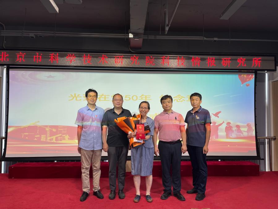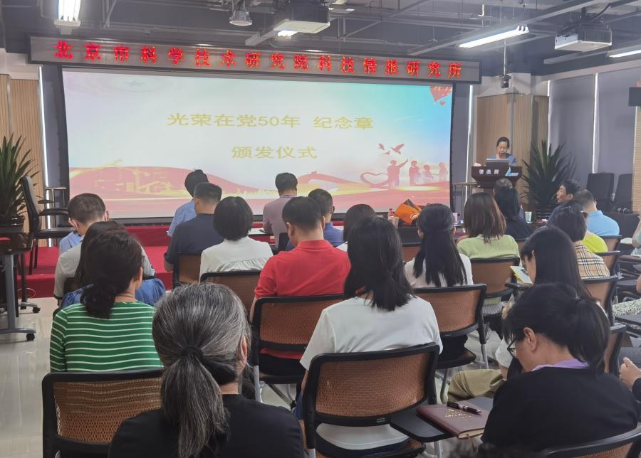 活动上为党龄满50年的老党员颁发了“光荣在党50年纪念章”。情报所老党员迟建军在现场的鲜花和掌声中接过沉甸甸的纪念章,与在职党员们分享自己入党经历和深刻感悟时说:“我是在部队入的党,服役六年复原回京,1978年参加高考,1983年初分配到咱们所的调研部,从事科学技术情报调研工作。回想我们这一代人走过的道路,步步都见证了我们党的英明伟大,如今我们党已经走过了百年历程,带领我们的国家快速发展,走向繁荣富强。今天党组织给予我的光荣,我要感谢党,感谢情报所党组织,感谢全体参会的党员同志,与我分享这幸福时刻”。
