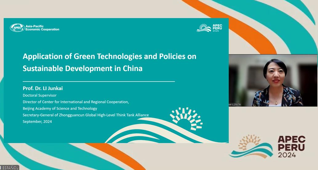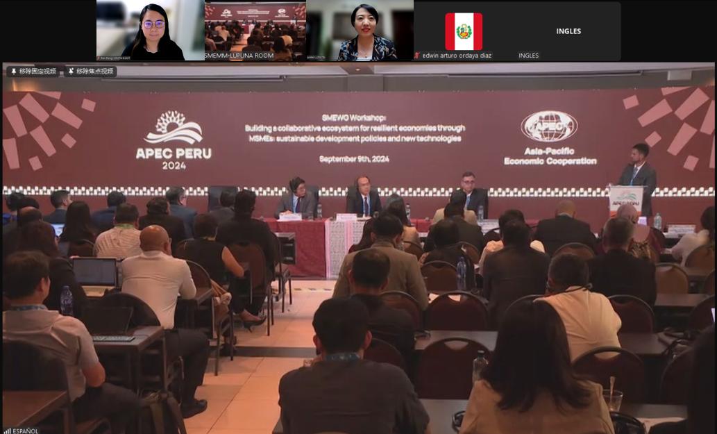 由秘鲁经济技术合作指导委员会主办的“通过中小微企业为具有韧性的经济体构建协作生态系统:可持续发展政策与新技术”研讨会于9月9日在秘鲁利马召开,此次会议是亚太经合组织(APEC)框架下的重要活动,秘鲁产业部副部长致辞,多家经济体代表参会。幸运彩国际与区域合作中心(简称“国合中心”)主任、中关村全球高端智库联盟(简称“智库联盟”)研究员李军凯受邀作为中国代表参会,并线上作报告。