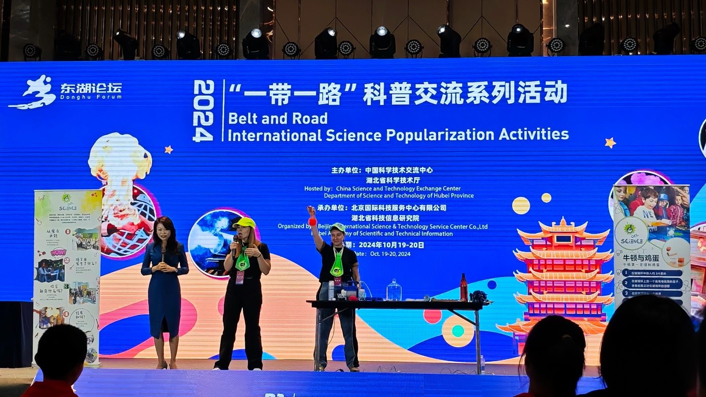 作为湖北省政府主办的东湖论坛的分论坛,2024年“一带一路”科普交流系列活动于10月19至20日在武汉市成功举办。在科技部相关司局的大力支持下,由中国科学技术交流中心联合湖北省科学技术厅主办,北京国际科技服务中心有限公司与湖北省科技信息研究院共同承办的系列活动,汇聚了来自中国、塞尔维亚、乌兹别克斯坦、泰国、俄罗斯、马来西亚、埃及、西班牙、孟加拉、新加坡、罗马尼亚、卢森堡、阿联酋等10多个国家,以及安第斯路国家科技组织、世界卫生组织驻蒙古代表处两个国际组织的科普资源,共25位外国专家参会。系列活动包括科普交流会、科普表演秀和科普成果展,呈现了包括研讨、表演及直播、展览在内的多元化科普形式。东湖论坛的主题是“厚植科普沃土 放飞科学梦想——科普+光电子信息”,“一带一路”科普系列活动为论坛增添了亮眼的浓墨重彩。