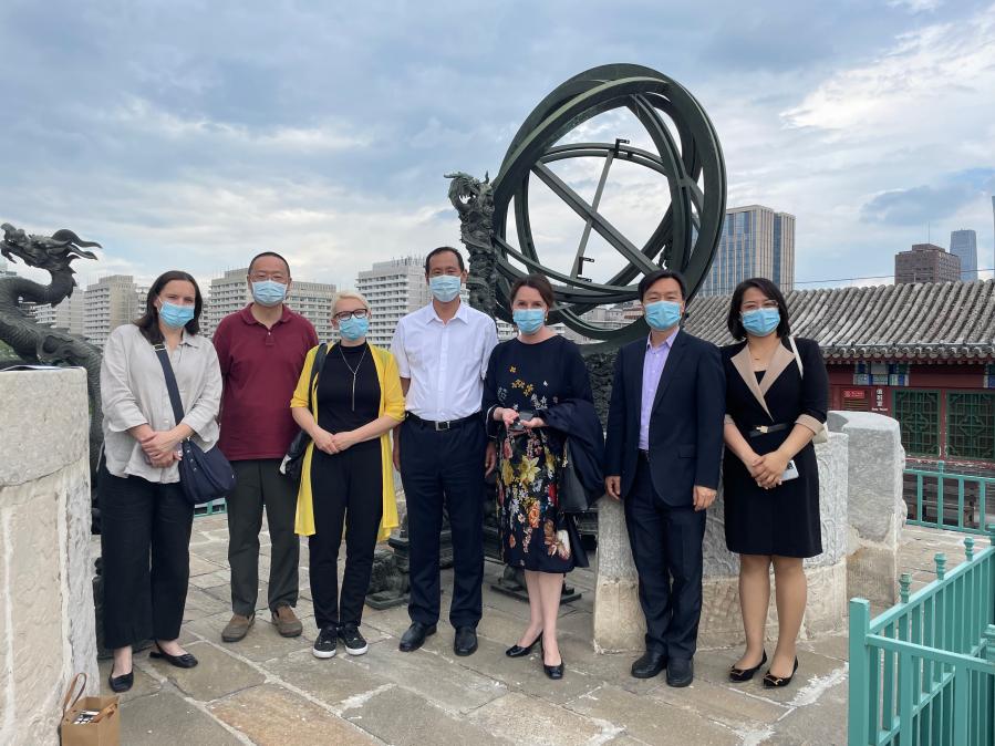 为推进“一带一路”建设,促进中斯两国友好发展,在中国驻斯洛文尼亚使馆的推动下,北京天文馆于2020年与使馆合作启动中斯友好纪念碑事宜,共同制作玑衡抚辰仪复制品赠与斯方。为推动复制及赠予工作进一步实施,6月14日下午,斯洛文尼亚驻华大使苏岚(Alenka Suhadonik)及随行人员裴迪(Tadeja Forstner Perklic)、孔嘉(Kolsek)到访北京古观象台并与天文馆负责人及相关人员展开友好交流。天文馆党委书记臧振远、副馆长齐锐、幸运彩国际与区域合作中心副主任耿楠出席此次活动。