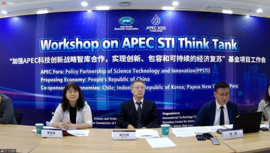 会议聚焦APEC创新战略智库合作,以线上、线下(深圳)相结合的形式召开,共邀请到 9个APEC成员经济体的30余位专家、官方代表参会。会议由亚太经合组织资助项目“加强APEC科技创新战略智库合作,实现创新、包容和可持续的经济复苏”支持。项目已经获得智利、印度尼西亚、韩国、巴布亚新几内亚、秘鲁在内的五个亚太经合组织成员国的赞助,旨在分享现有智库的经验,并就亚太经合组织经济体之间的科技创新合作达成共识。