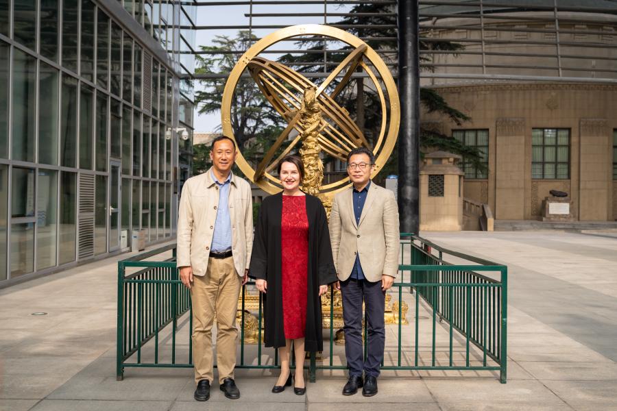 天文馆党委书记臧振远(左)、斯洛文尼亚驻华大使苏岚(中)、中国驻斯洛文尼亚大使王顺卿(右)