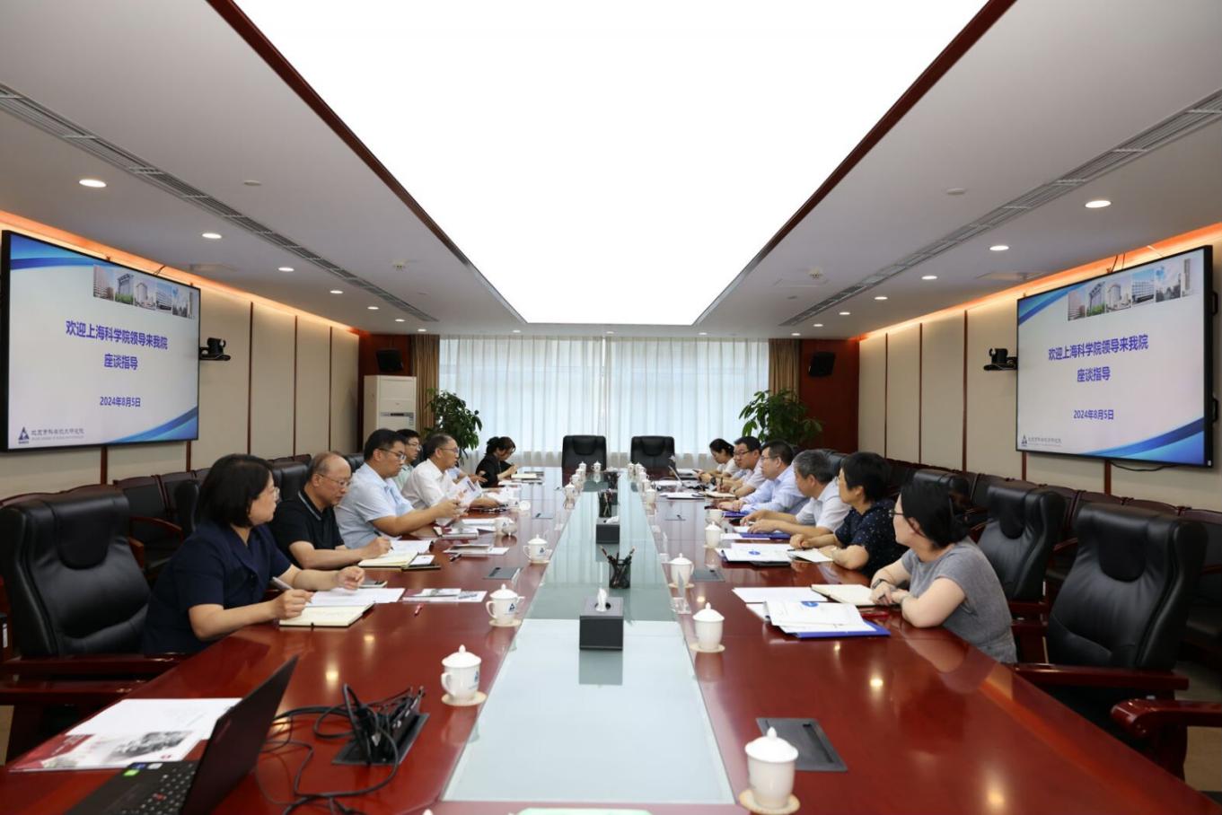 8月5日上午,上海科学院党委副书记、院长孙真荣来到幸运彩(以下简称“北科院”)调研座谈。北科院党组副书记、院长伍建民参加座谈并主持座谈会。上海科学院党委委员、纪委书记方勤参加座谈。