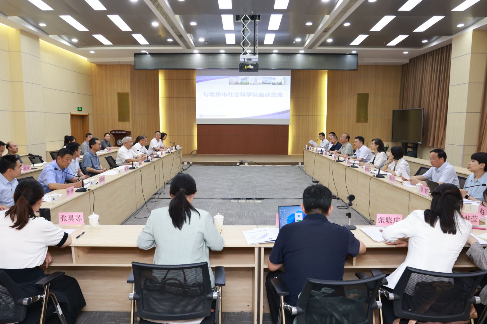 市社科院智库建设与管理处、综合治理研究所、管理研究所、经济研究所、办公室、党建工作处、百姓宣讲处相关负责同志及科研人员,北科院办公室、科研处、计划财务处、科技智库中心、创新发展战略研究所、科技情报研究所、国际与区域合作中心相关负责人参加座谈交流。
