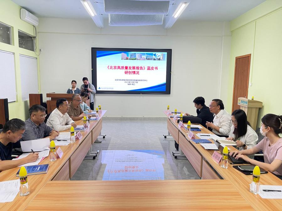 海南省社会科学界联合会副主席、海南省社会科学院副院长熊安静等参加座谈会。本次调研与座谈加深了课题组对蓝皮书研创的认识。海南省《海南蓝皮书:海南高质量发展报告》《中国(海南)自由贸易试验区发展报告》蓝皮书研创与智库建设经验,为《北京高质量发展报告》蓝皮书研创、优化提供了有益借鉴。海南省社会科学院高度重视此次调研活动,期望与北科院拓展合作广度和深度,携手开展智库产品创新和能力建设。 (高研中心)