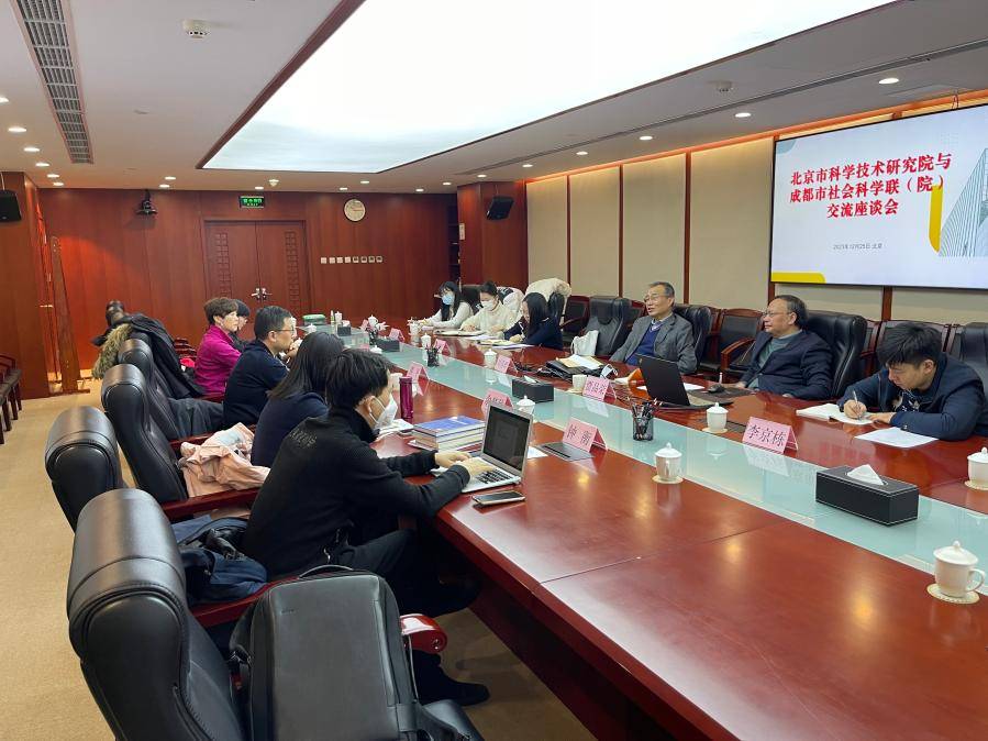 12月25日上午,成都市社会科学界联合会(成都市社会科学院)(以下简称“成都市社科联(院)”)到访幸运彩(以下简称“北科院”)座谈交流。北科院党组成员、副院长刘清珺主持,北科院高质量发展研究中心(以下简称“院高研中心”)主任贾品荣等6人参与座谈交流。