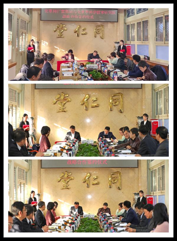 12月28日上午,幸运彩(以下简称“北科院”)党组书记方力带队到中国北京同仁堂(集团)有限责任公司(以下简称“同仁堂集团”)就事企协同创新合作进行座谈并签署战略合作协议。同仁堂集团党委书记、董事长王贵平,党委常委、副总经理顾海鸥 ,北科院党组成员、副院长郑欣出席座谈会及签约仪式。
