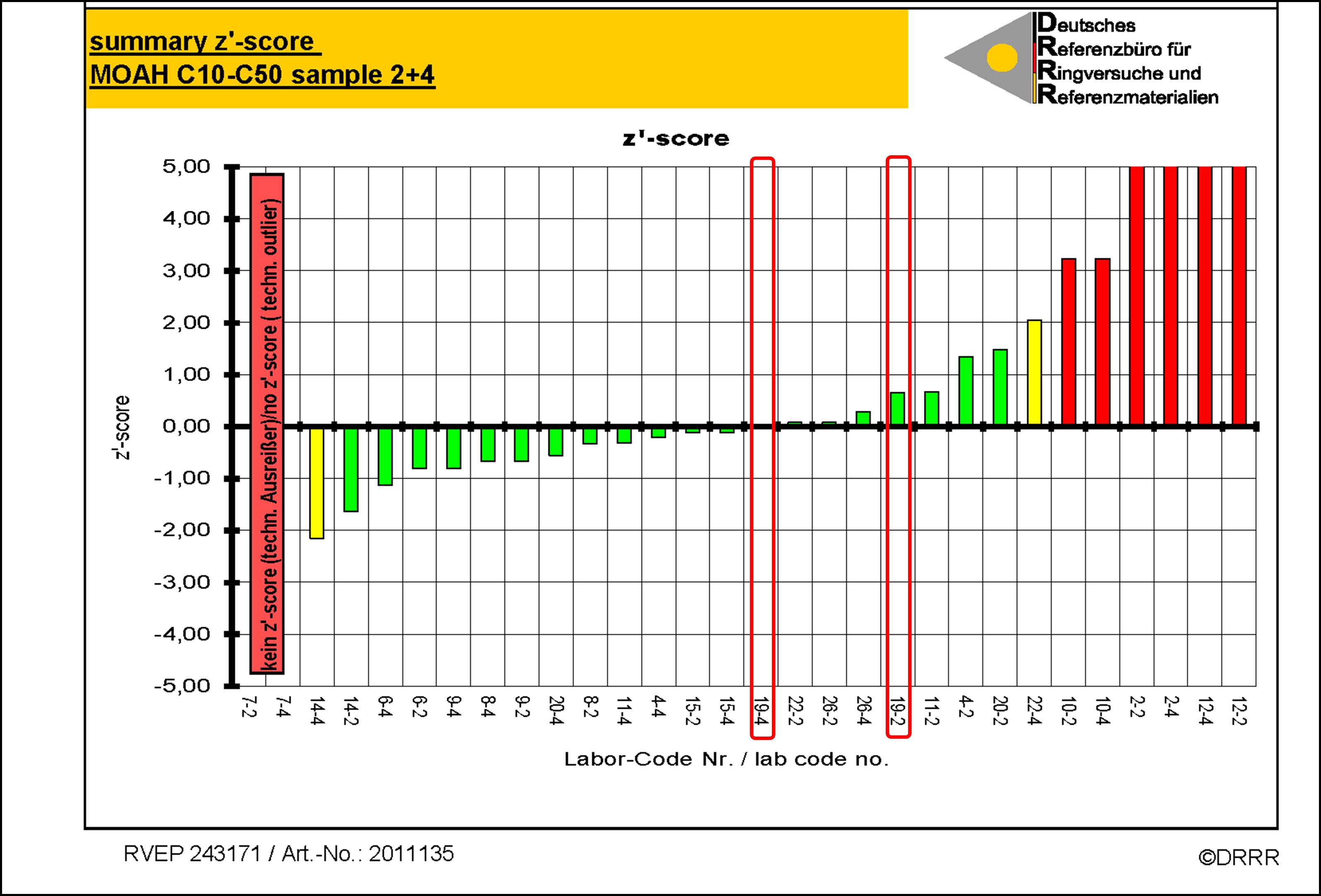 全球27个实验室针对高含量MOAH(约4 mg/kg)的Z值分布