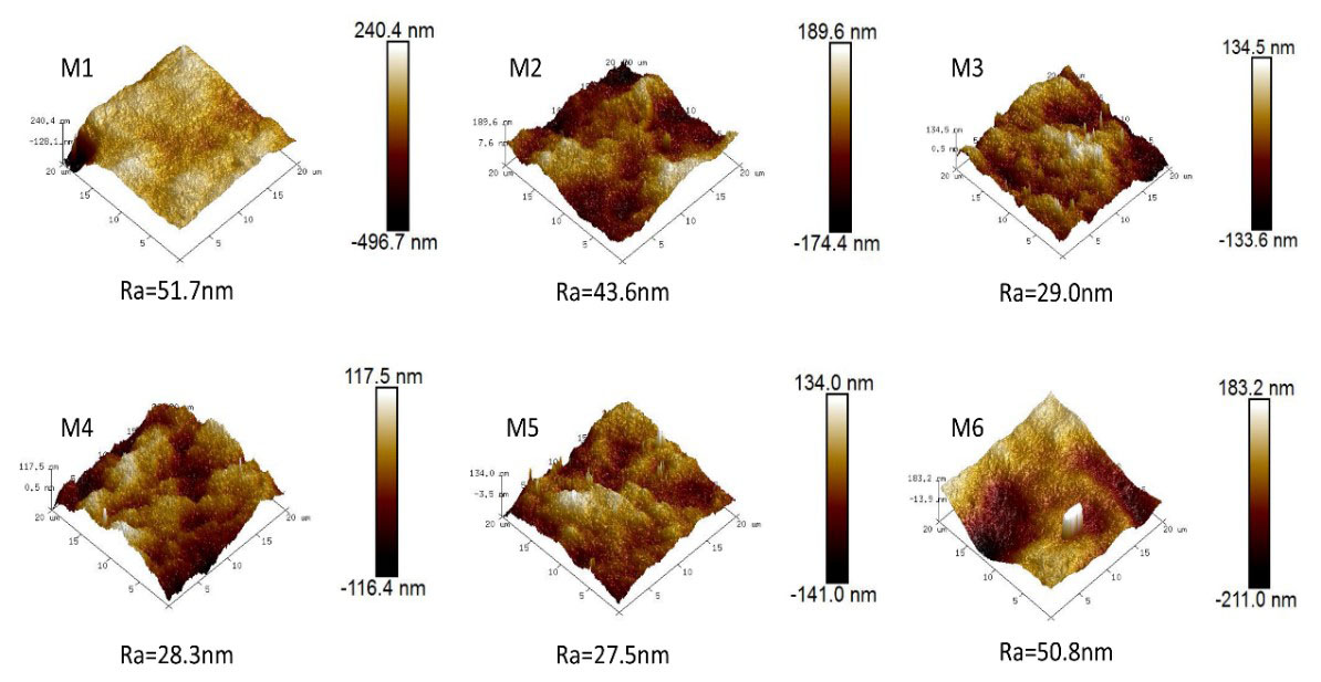 图2. 复合膜三维形貌及表面粗糙度