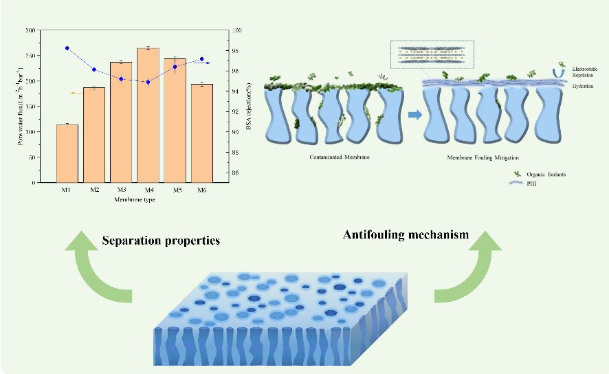 图4. 复合膜的分离性能及耐污染机理