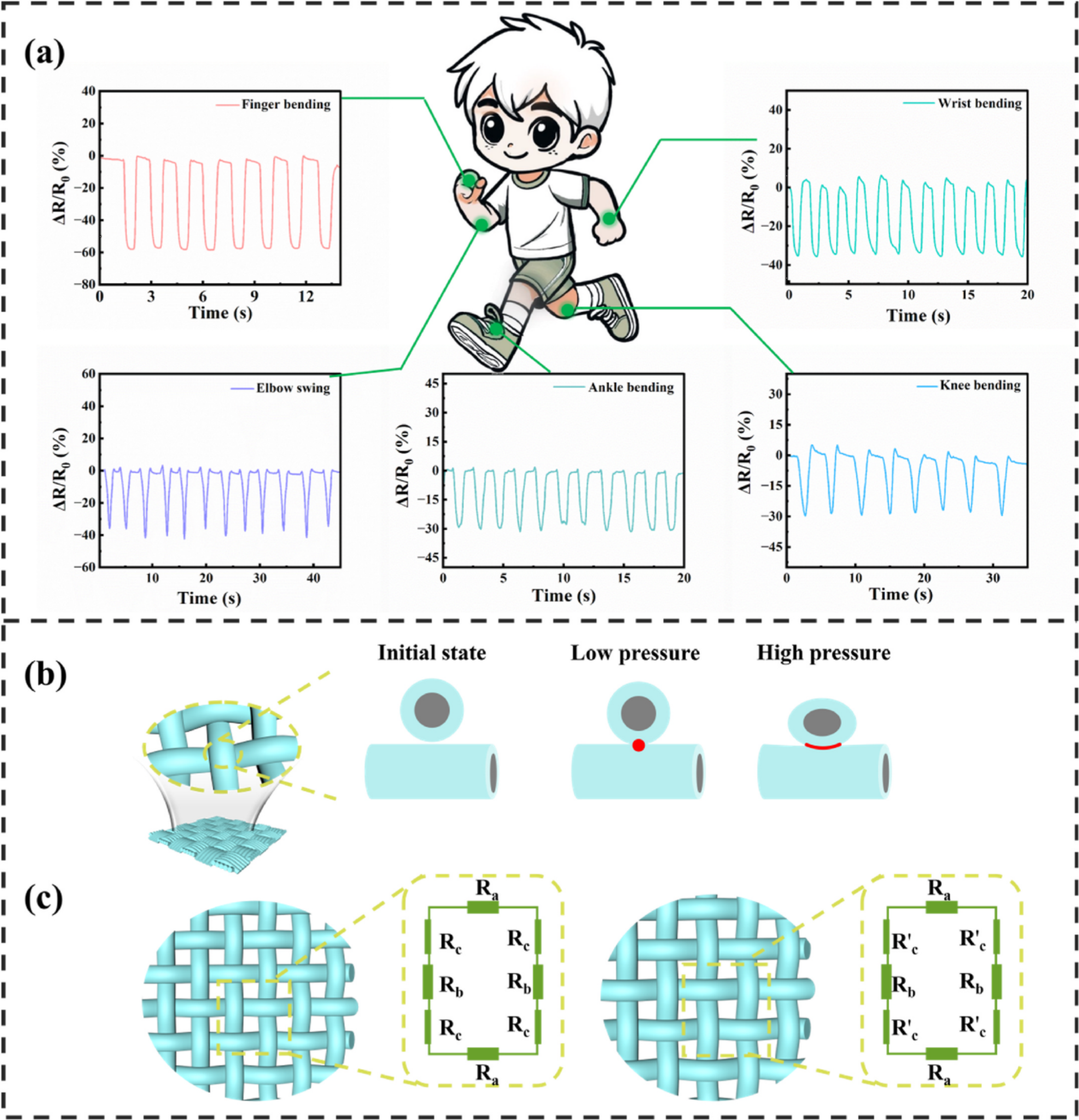 图4.Cu3Se2/CC 传感器在人体运动实时监测中的应用 Carbon 232 (2025) 119814