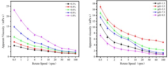 图1.不同浓度和pH值对EPS粘度的影响
