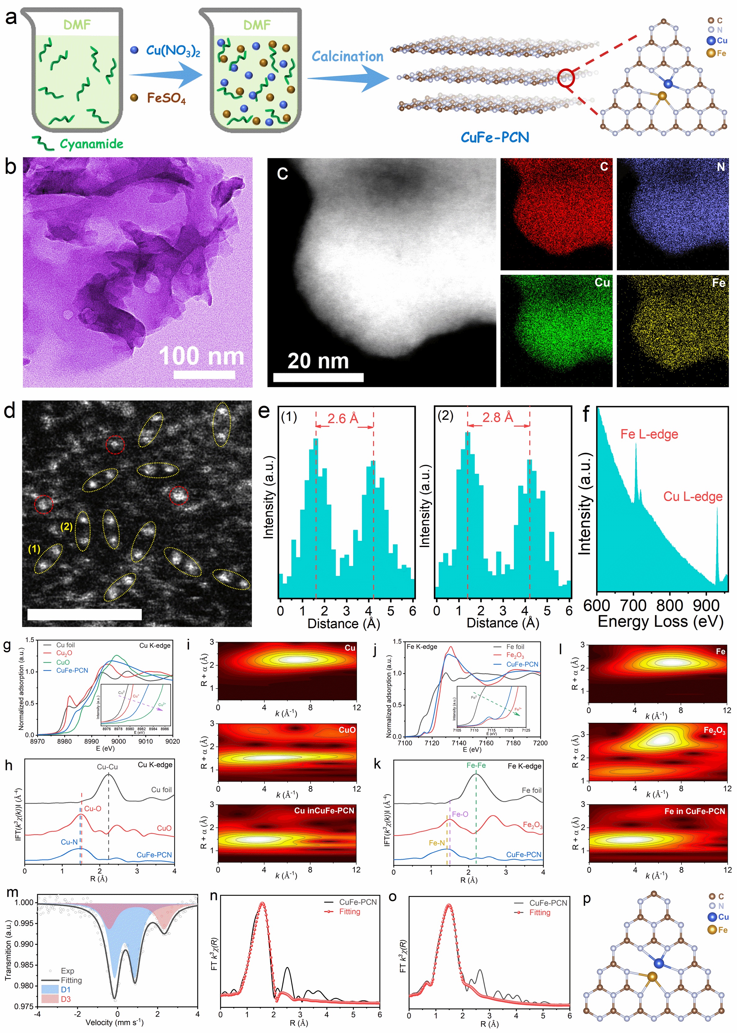 图1. CuFe-PCN双位单原子催化剂合成与表征