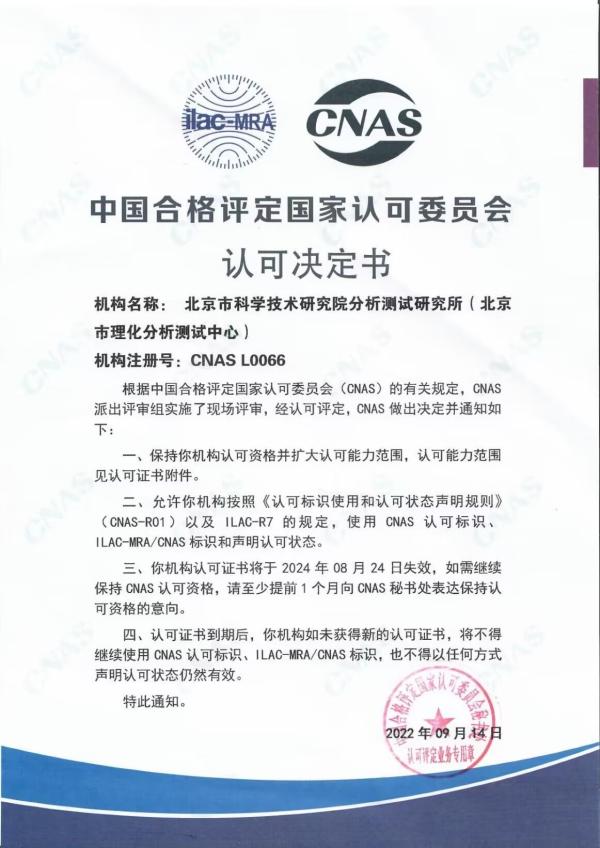 图2自制方法获得CNAS资质认可