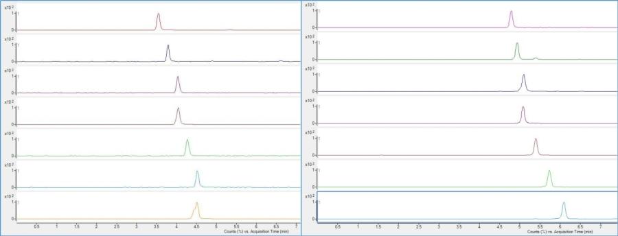 幸运彩资源环境研究所生态环境监测中心团队依托财政资金改革与发展专项课题,根据PFASs特点,基于高效液相色谱/三重四极杆串联质谱建立了水中PFASs的靶向精准定量检测方法,研发了性能俱佳的前处理方法,优化了色谱条件和质谱条件,开展了方法学研究。经验证,本方法具有目标物分析时间短、方法检出限低、精密度及正确度好等优点,全部物质8分钟内出峰完毕,检出限低至0.5~2.4ng /L,低于EPA533中对应物质的检出限。本方法涵盖了全氟羧酸、全氟磺酸和全氟辛基磺酰胺类物质3类14种PFASs的检测。