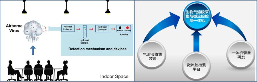 2003年SARS肺炎、2009年H1N1甲型流感,以及2019年新冠肺炎等重大疫情,通常通过环境生物气溶胶的传播造成大面积人群感染,而针对环境生物气溶胶的实时现场检测一直没有成熟可靠的方案,因此,团队针对这一技术瓶颈开展研究(图1)。