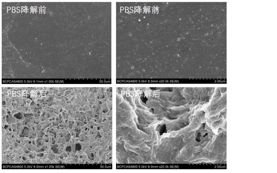 图2 PBS酶促降解前后主体残余部分表面形貌SEM分析