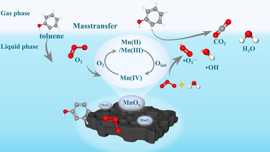 图2.甲苯在MnOxAC+WCO体系中降解机理