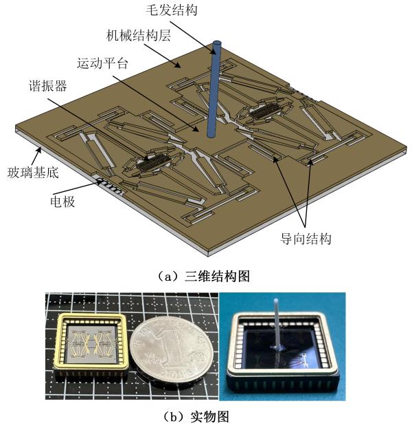 图1.仿毛发传感器结构及实物图
