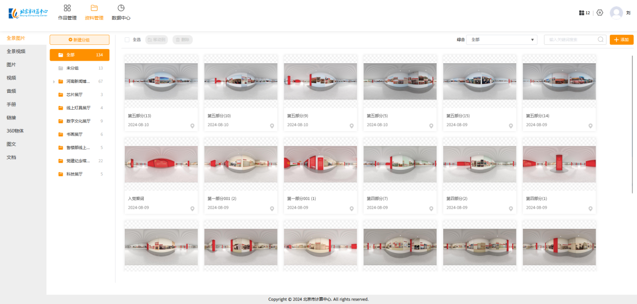 产品支持视频、音频、3D模型、全景图片、序列帧图片等多种素材,能够支持360°、720°环物展示。