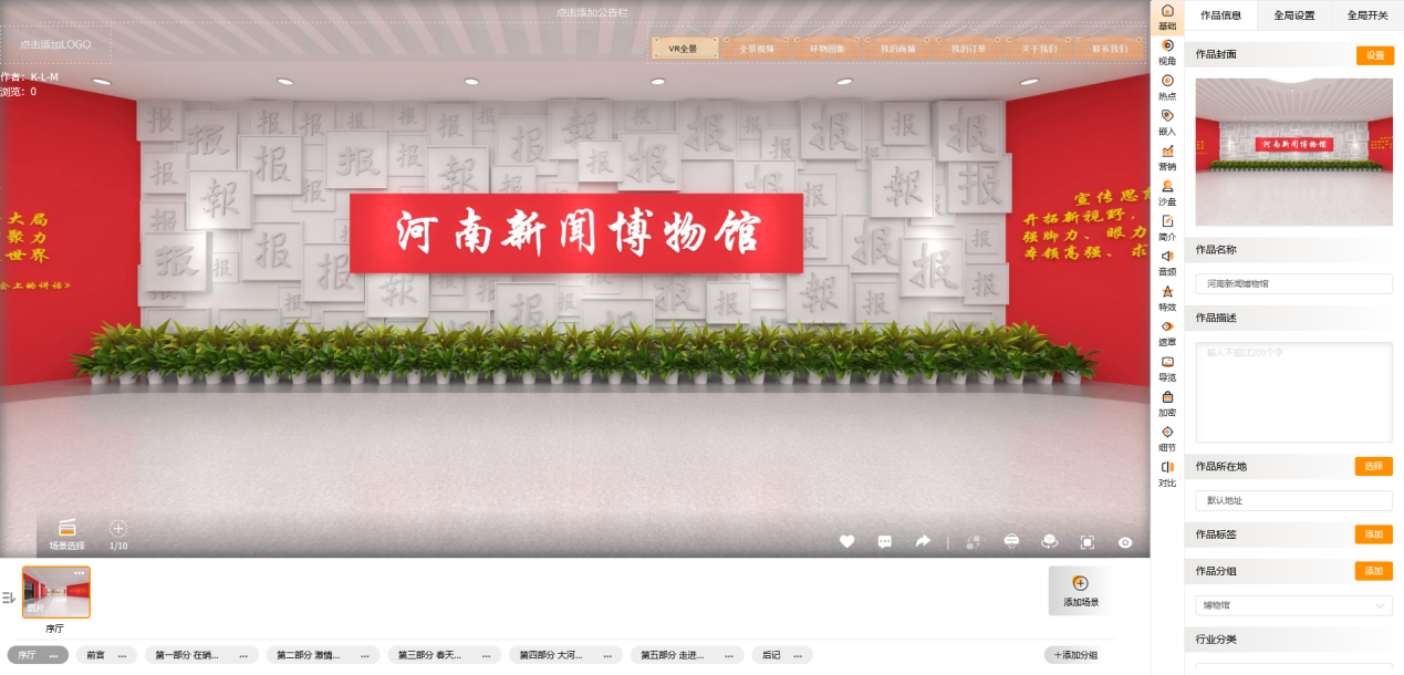 平台实现了数字展厅制作全流程覆盖,还可以定制专属场景,如企事业单位的荣誉室、展厅、大型生产过程、操作过程、种植基地、加工车间等的展示,支持在线浏览,通过发布链接或二维码,既可在企业公众号、小程序中直接使用,也可以URL形式接入企业网站或APP。