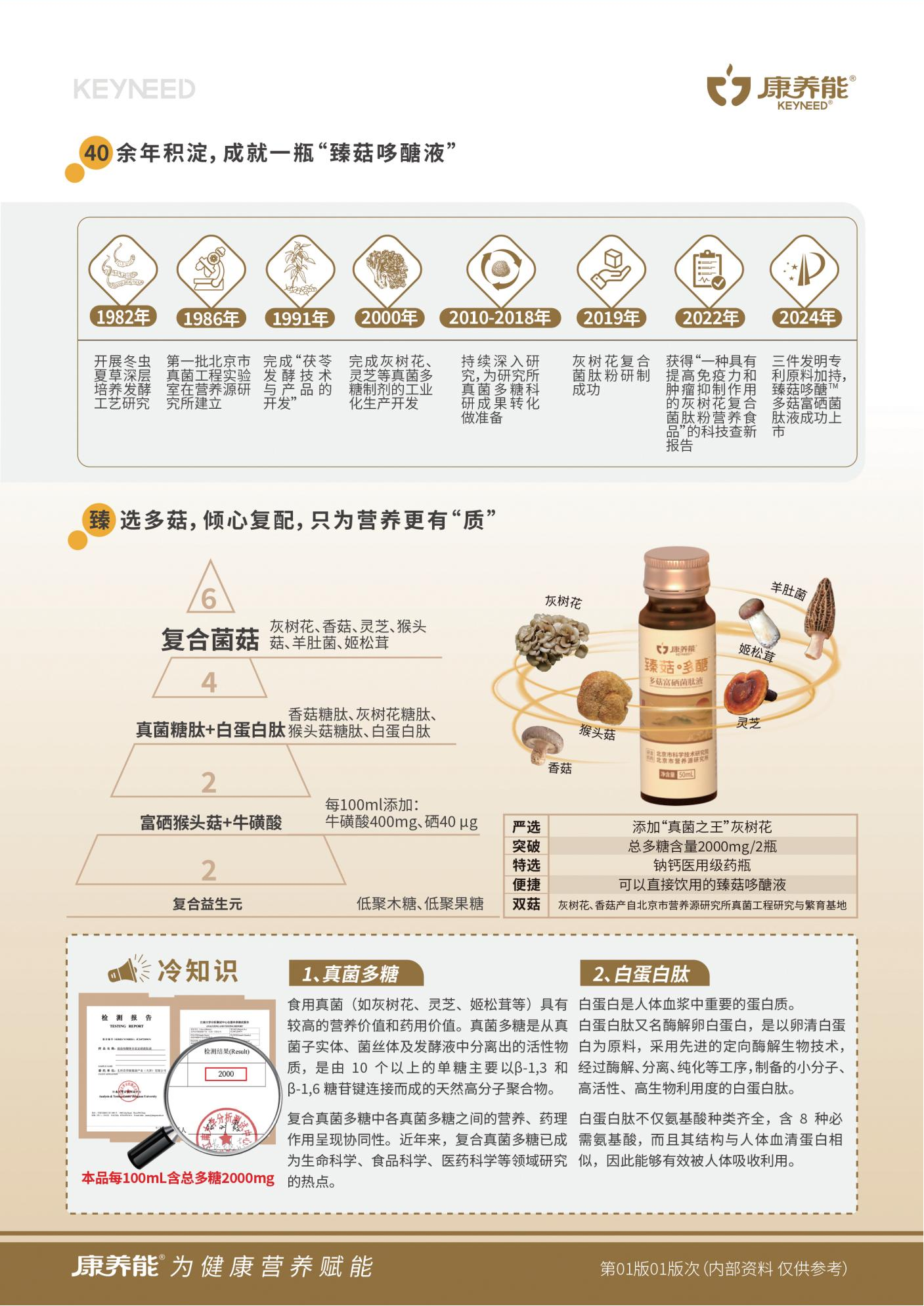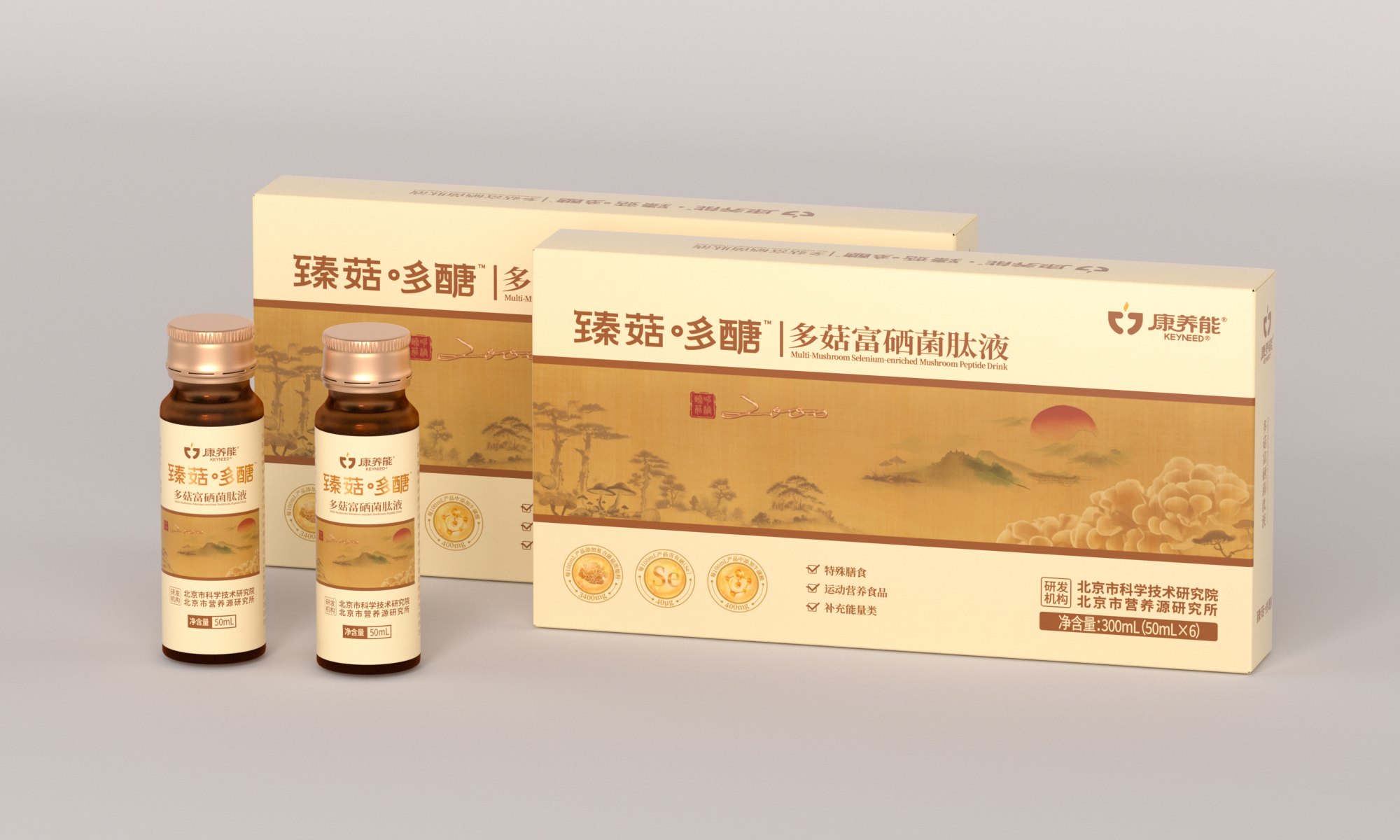 维稳营养元气加满!康养能®臻菇哆醣TM多菇富硒菌肽液四十余年真菌研究积淀,成就一瓶“臻菇哆醣”;三件发明专利原料加持,每100mL多糖含量2000mg;灰树花、香菇产自北京市营养源研究所真菌工程研究与繁育基地。