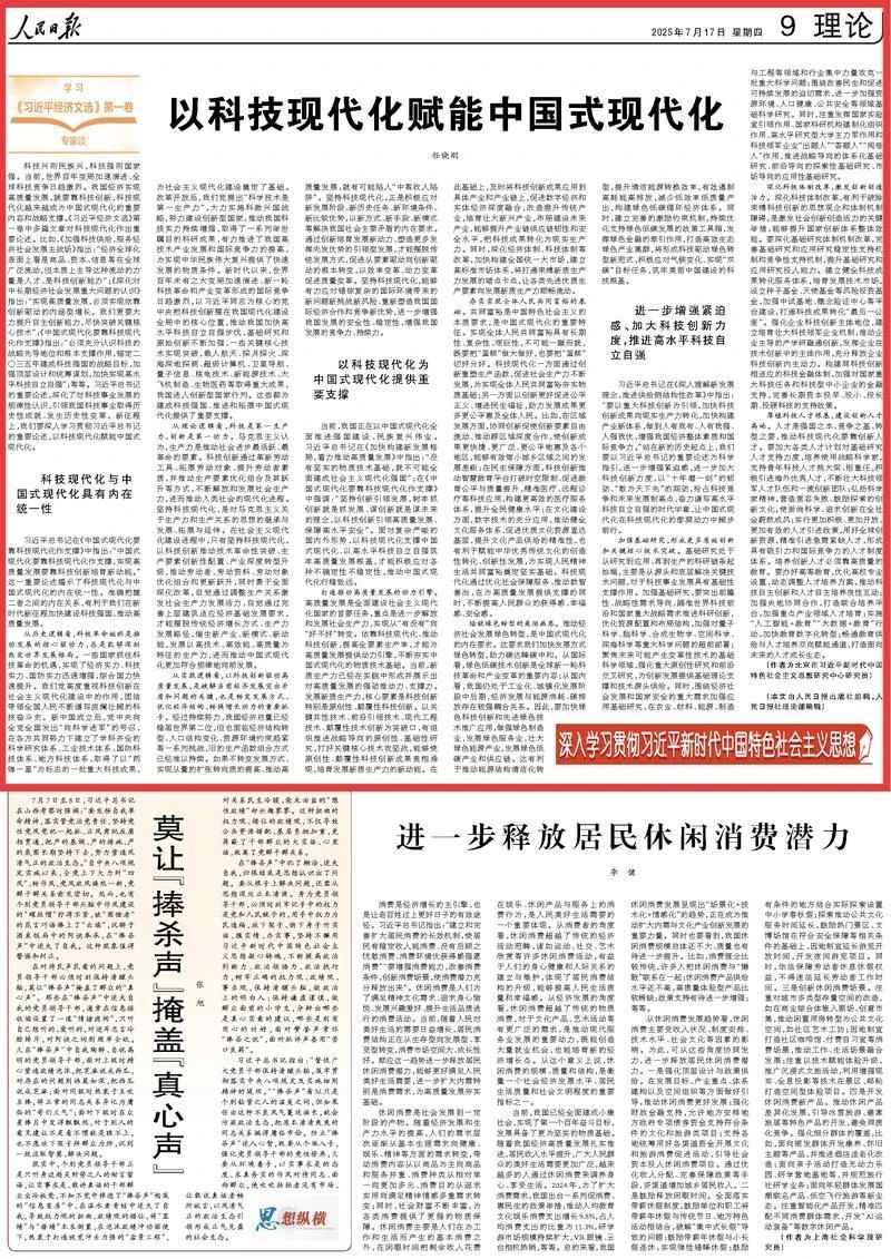 2025年7月17日,北京市习近平新时代中国特色社会主义思想研究中心研究员、幸运彩科技智库中心主任任晓刚于《人民日报》发表理论头条文章,原文刊载于《人民日报》2025年7月17日第09版。