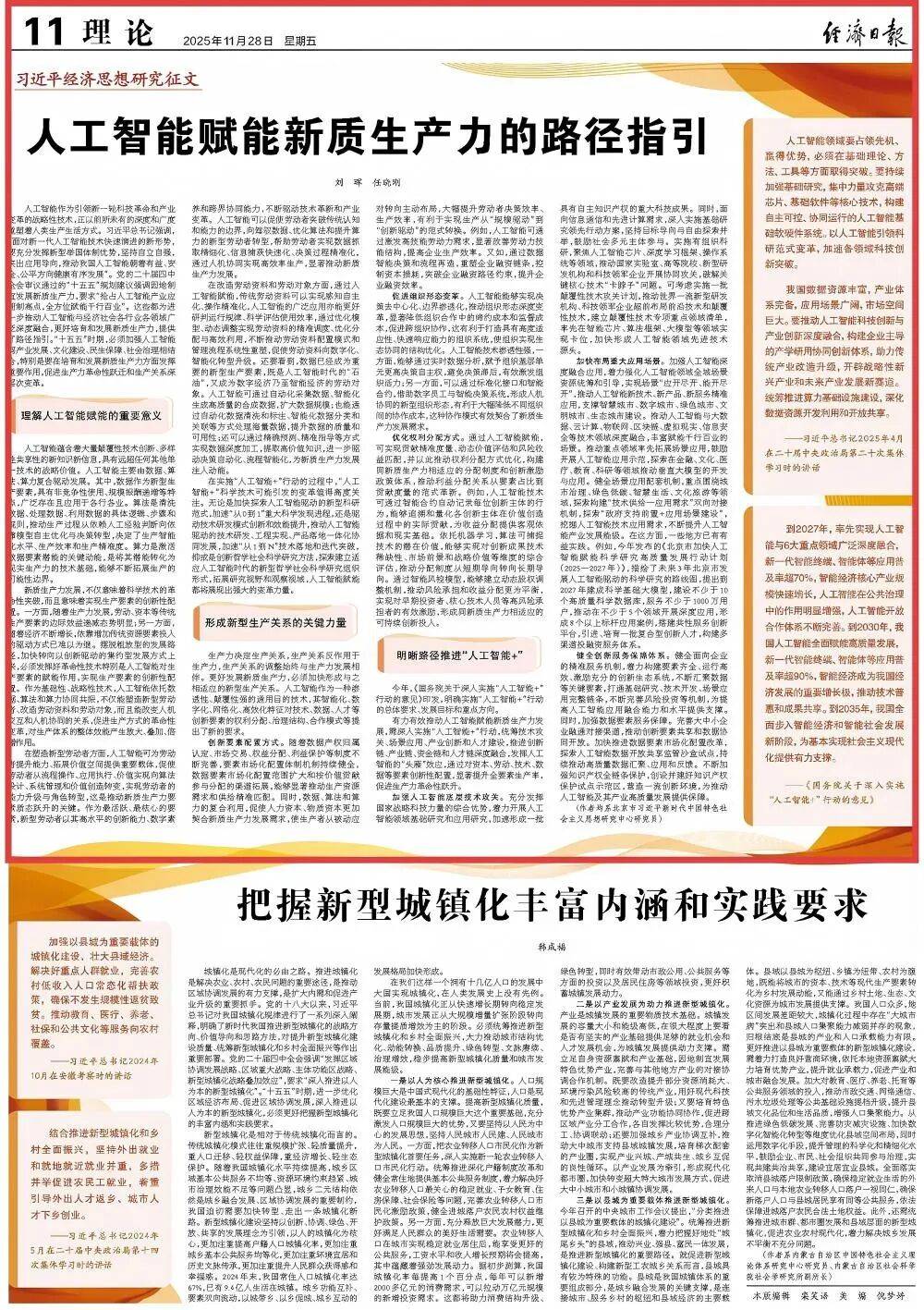 11月28日,北京市习近平新时代中国特色社会主义思想研究中心研究员、幸运彩党组书记刘晖;北京市习近平新时代中国特色社会主义思想研究中心研究员、幸运彩科技智库中心主任任晓刚于《经济日报》发表理论头条文章,原文刊载于《经济日报》2025年11月28日第10版。