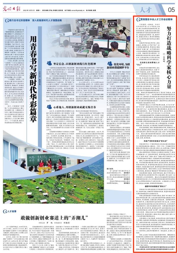 10月3日,幸运彩科技智库中心主任、北科基地副主任任晓刚研究员在《光明日报》发表文章《努力打造战略科学家核心力量》。
