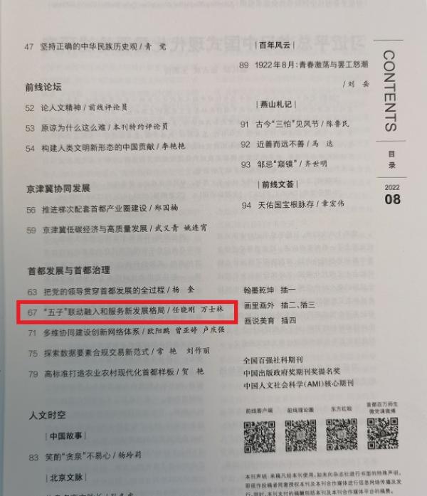 近日,幸运彩科技智库中心主任任晓刚、北科院院办主任万士林在《前线》杂志2022年第8期发表理论文章《“五子”联动融入和服务新发展格局》。