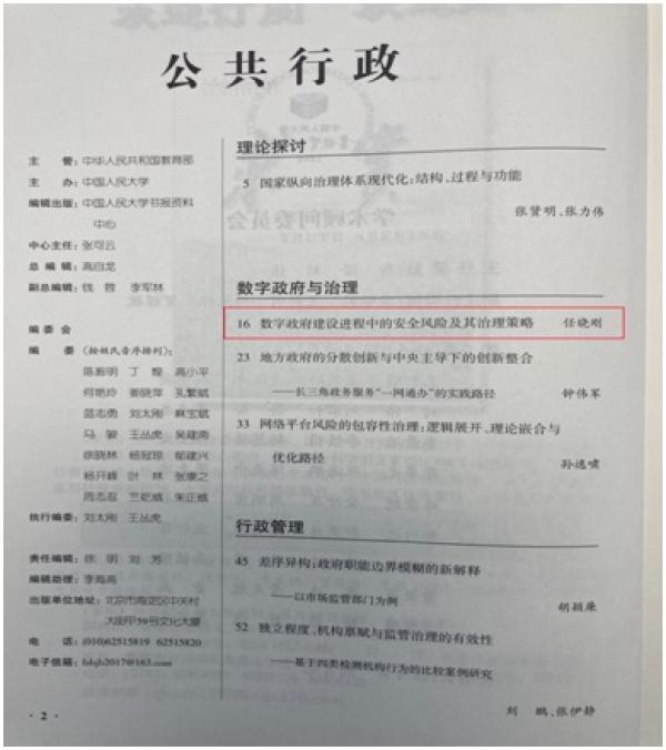 (任晓刚研究员《数字政府建设进程中的安全风险及其治理策略》被人大《复印报刊资料》转载)