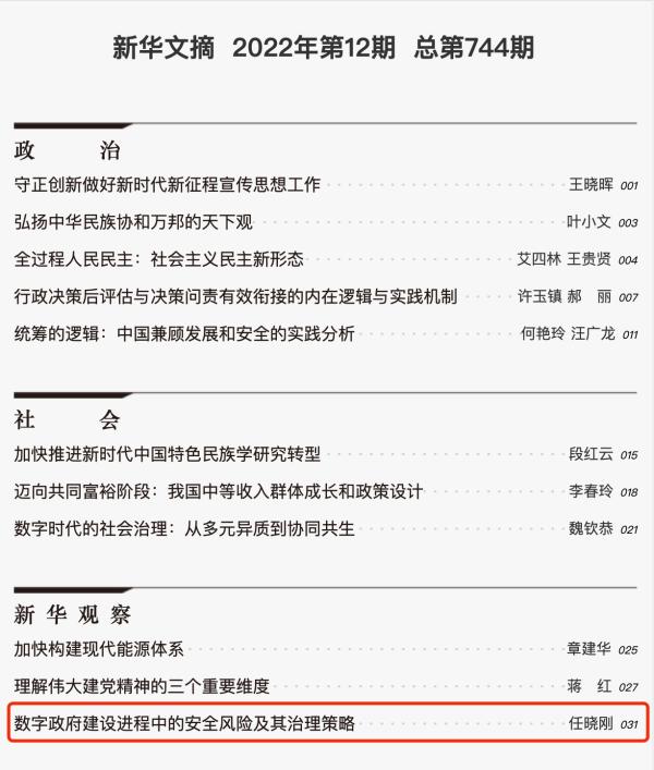(任晓刚研究员《数字政府建设进程中的安全风险及其治理策略》被《新华文摘》转载)