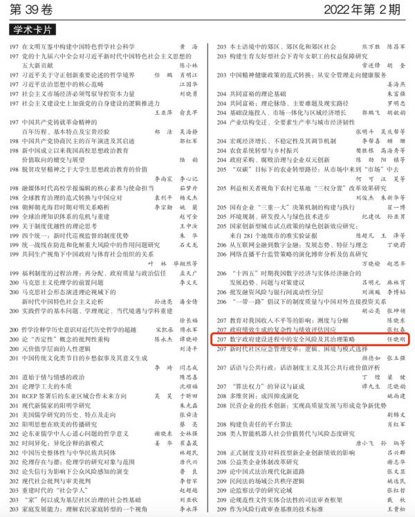 (任晓刚研究员《数字政府建设进程中的安全风险及其治理策略》被《高等学校文科学术文摘》转发)