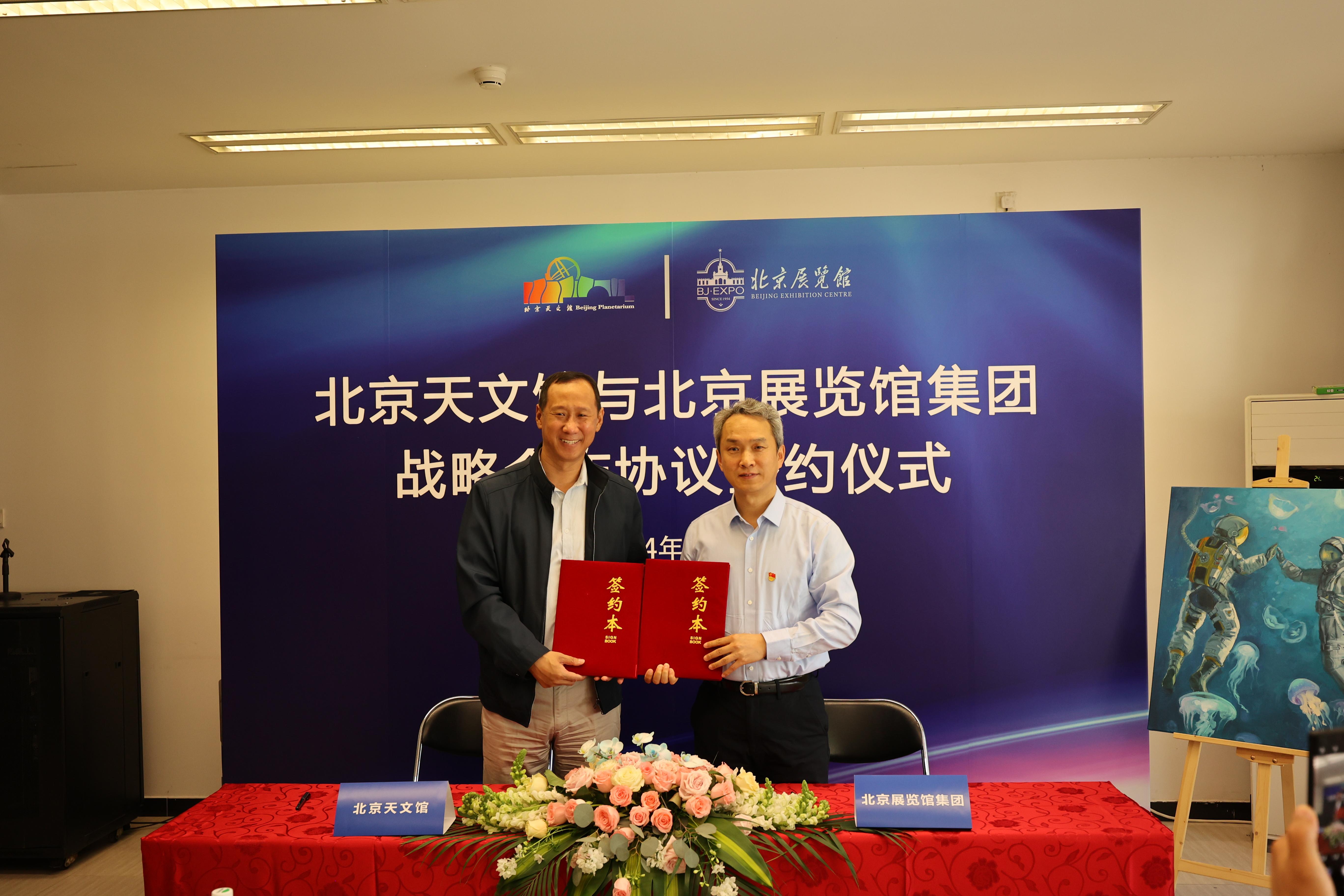 5月21日上午,北京天文馆(以下简称“天文馆”)与北京展览馆集团在北京古观象台举行战略合作协议签约仪式。天文馆党委书记、副馆长臧振远,北京展览馆集团党委书记、总经理丛日芳代表双方共同签署战略合作协议。
