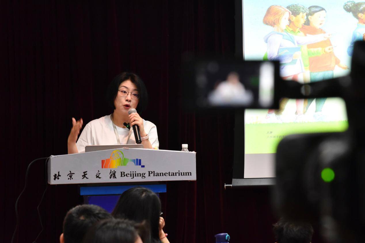 活动现场,天文馆研究员、科普电影编剧、科普作家刘茜老师和到馆读者及线上公众分享了由她译著的天文科普绘本《我和宇宙》。该书采用瑰丽的水彩和水粉作画,配以深入浅出的文字,完美呈现了科学与艺术的交融,是一部融学术探索、科学普及和艺术欣赏于一体的知识性读物。