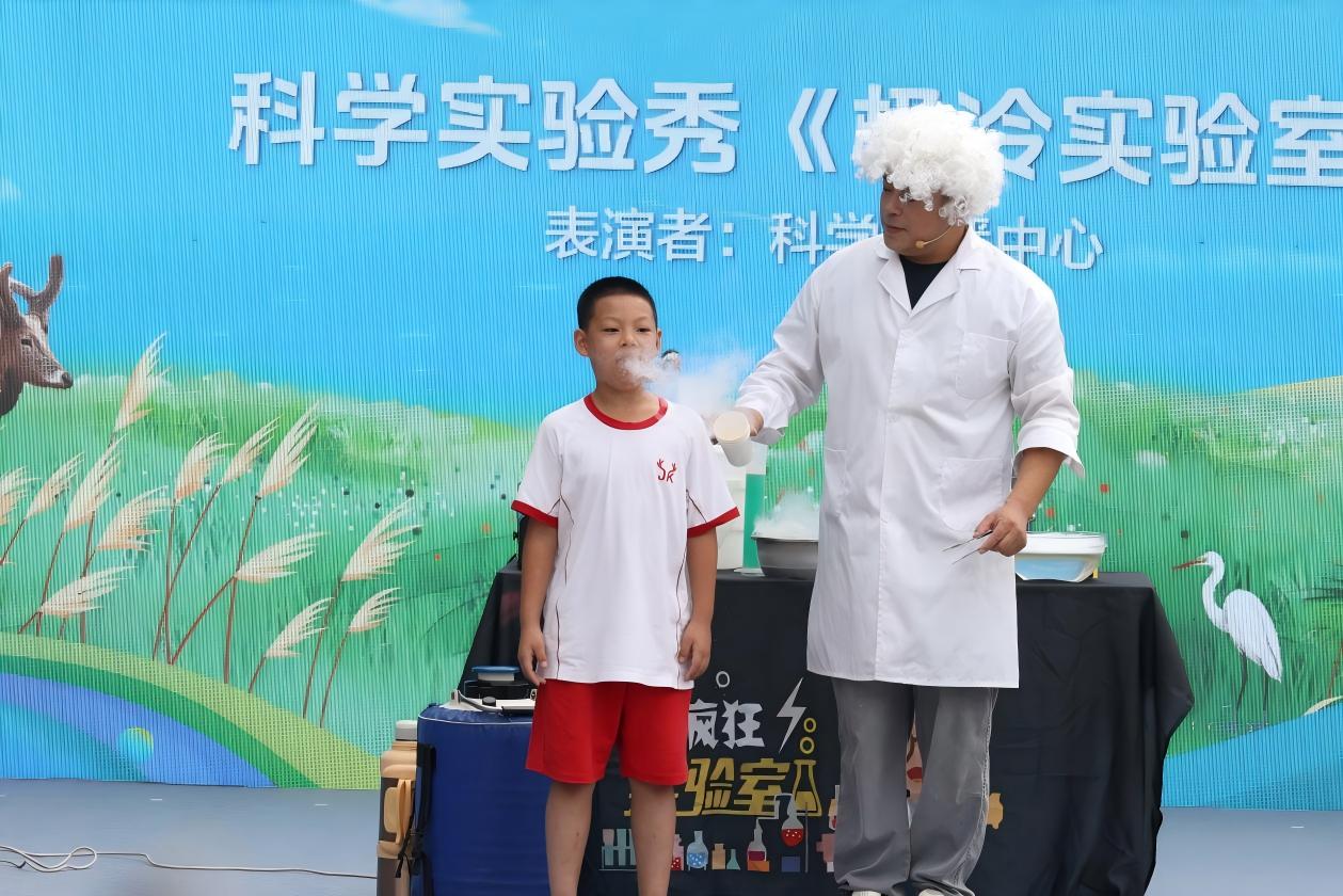 科学实验秀《极冷实验室》通过干冰泡泡、空气炮、液氮花脆、云海沸腾等现象,吸引孩子们纷纷上台体验。