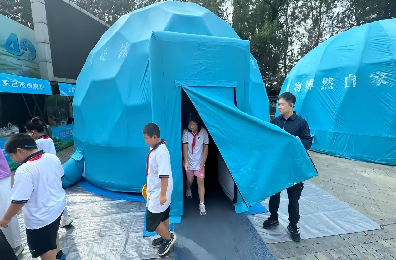 活动还设有科普观影与游戏专区。自然馆、天文馆球幕影院放映《地球上的狂骑》《生命的起源》《黄道十二宫》《天上的宫殿》等科普影片,深受孩子们喜爱。科学传播中心与麋鹿中心推出知识闯关类科普游戏,让公众在娱乐中学习。麋鹿中心同步开展“夜探麋鹿苑”“小小饲养员科普体验”“科普自驾游”“科学探索基地”“文创市集”等活动,进一步丰富公众参与体验。