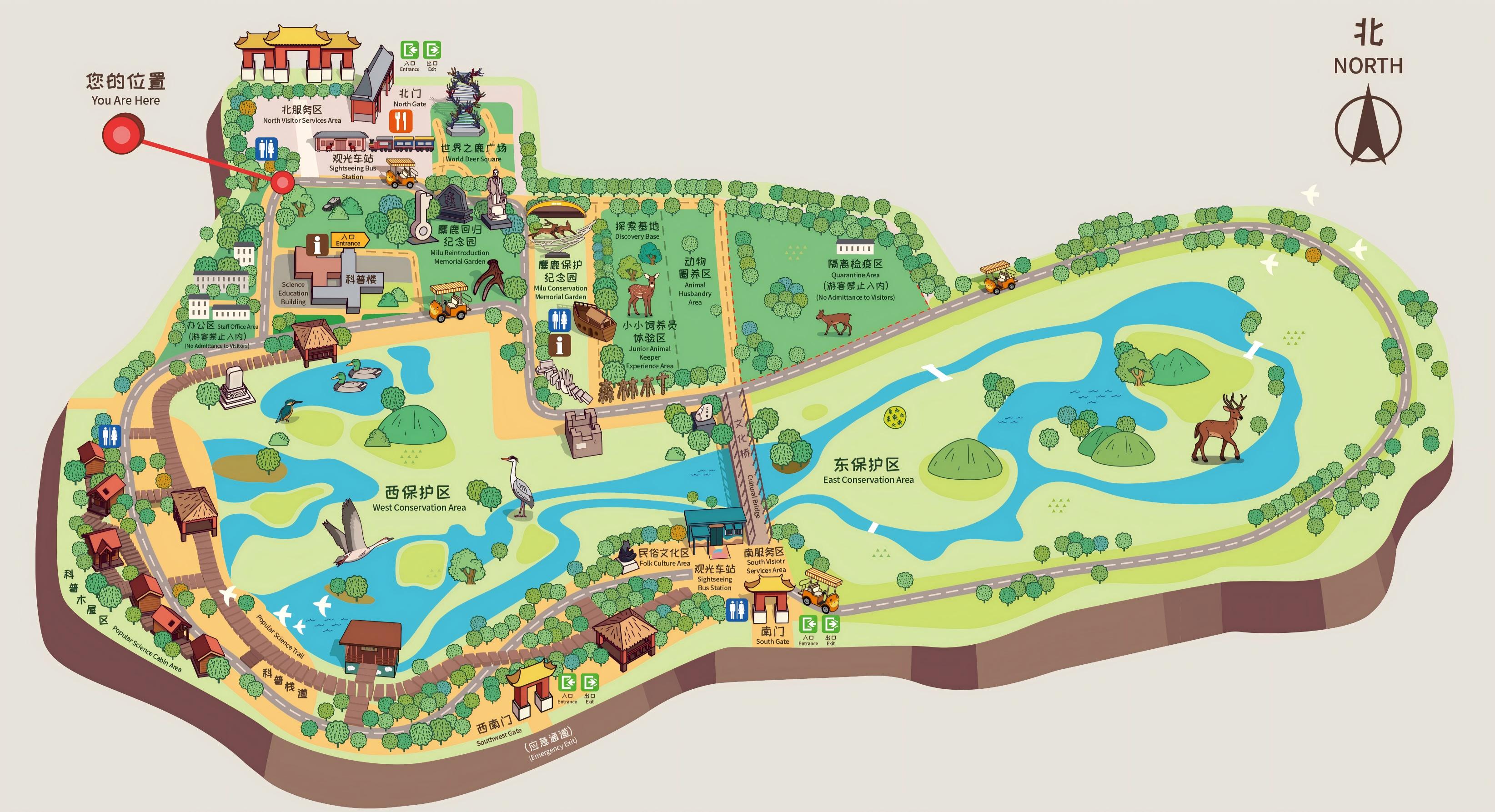 近日,麋鹿苑完成苑区导览系统的全面升级,新年到来之际,新版导览图以崭新面貌与游客见面。此次更新旨在提升游客参观体验,融入更多人文关怀与科技元素,让访客在亲近自然的同时,感受更贴心、更便捷的游览服务。