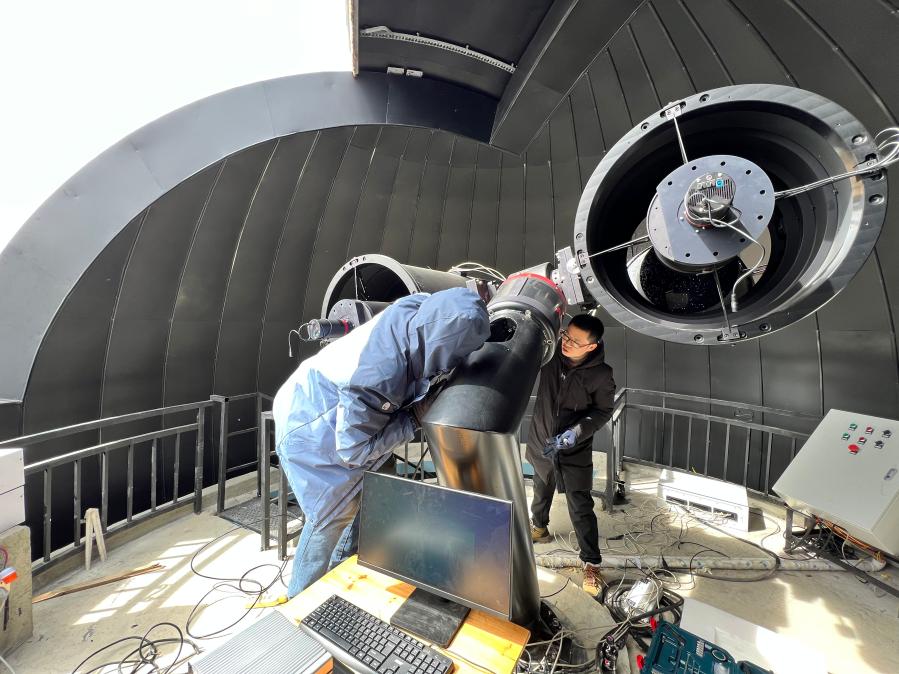 经过两年多的设备采购、基础建设和安装调试,北京天文馆大视场双筒巡天望远镜已于近日开始试运行。该设备建于四川省甘孜藏族自治州稻城县海拔4698米的无名山台址,由两台60cm口径主焦点式大焦比望远镜,两部大靶面CMOS探测器、高精度赤道仪,及其他附属设施组成。目前,设备已实现单次曝光不少于8平方度视场,R波段60s曝光极限星等20.4等(信噪比7)的科学巡天观测。将在超新星、宇宙罕见暂现源、变星、黑洞潮汐瓦解及太阳系小天体等多个领域开展搜寻工作。同时,该设备也可用于月球、行星、人造天体、深空天体的远程拍摄和科普宣传工作。