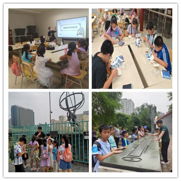 北京古观象台活动主要分两个部分,一是 “小小天文官”之跟着官官找时间特色活动课程;二是古台特色科普讲解。 “小小天文官”之跟着官官找时间,通过制作赤道式日晷模型了解赤道式日晷的特点及使用方法,认识太阳高度变化与赤道式日晷结构的关系。模拟漏壶漏刻计时原理,讲述漏壶经历淹箭法、沉箭法、浮箭法三大发展过程,在动手实验中了解中国古人是如何认识时间、记录时间,体会先人的智慧。在特色科普讲解部分,依托古观象台场地资源,对中国古代天文学发展、古观象台璀璨历史、清代八件青铜古仪进行细致入微地讲解。科普老师运用妙趣横生的讲解方式,结合生活实际,让孩子们切身体会中国古代天文学与中国传统优秀文化、日常生活的紧密联系,更加具体认识到中国古天文学乃至中华文化的辉煌与伟大。